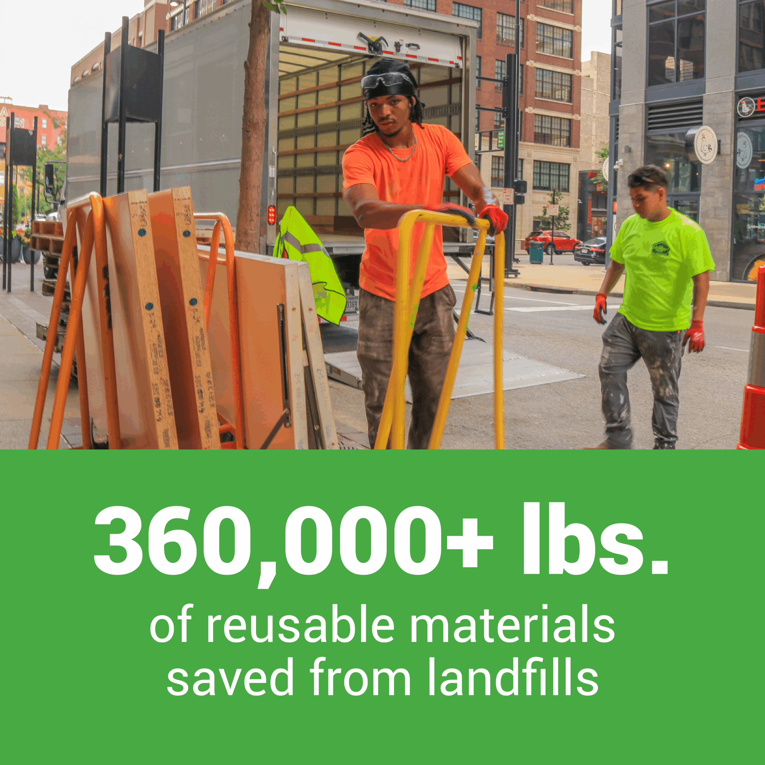 Through this work, we successfully salvaged more than 360,000 pounds of building materials, keeping valuable resources out of landfills and redirecting them back into the community through reuse and resale.